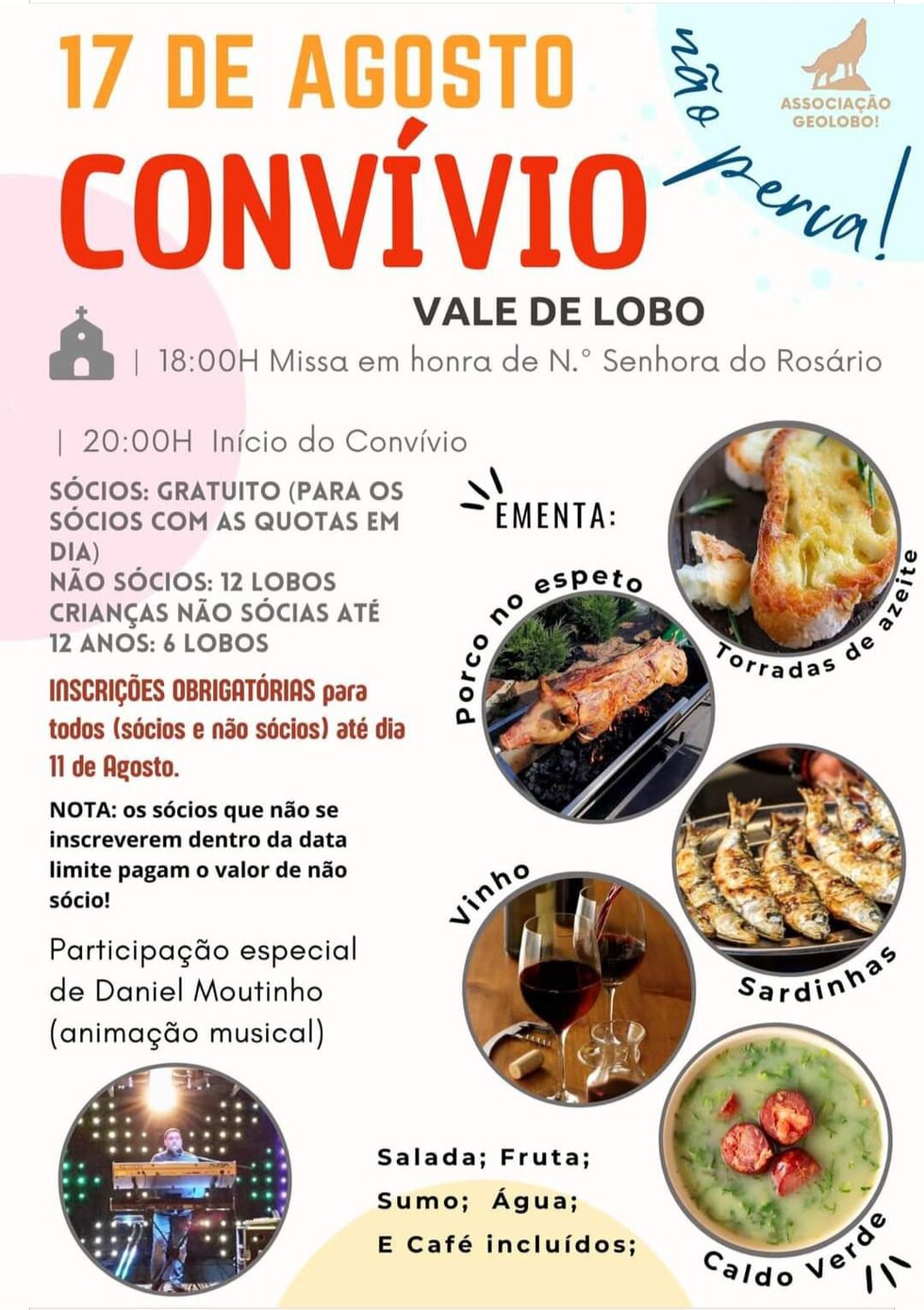 Crianças (não sócias): 6 Lobos