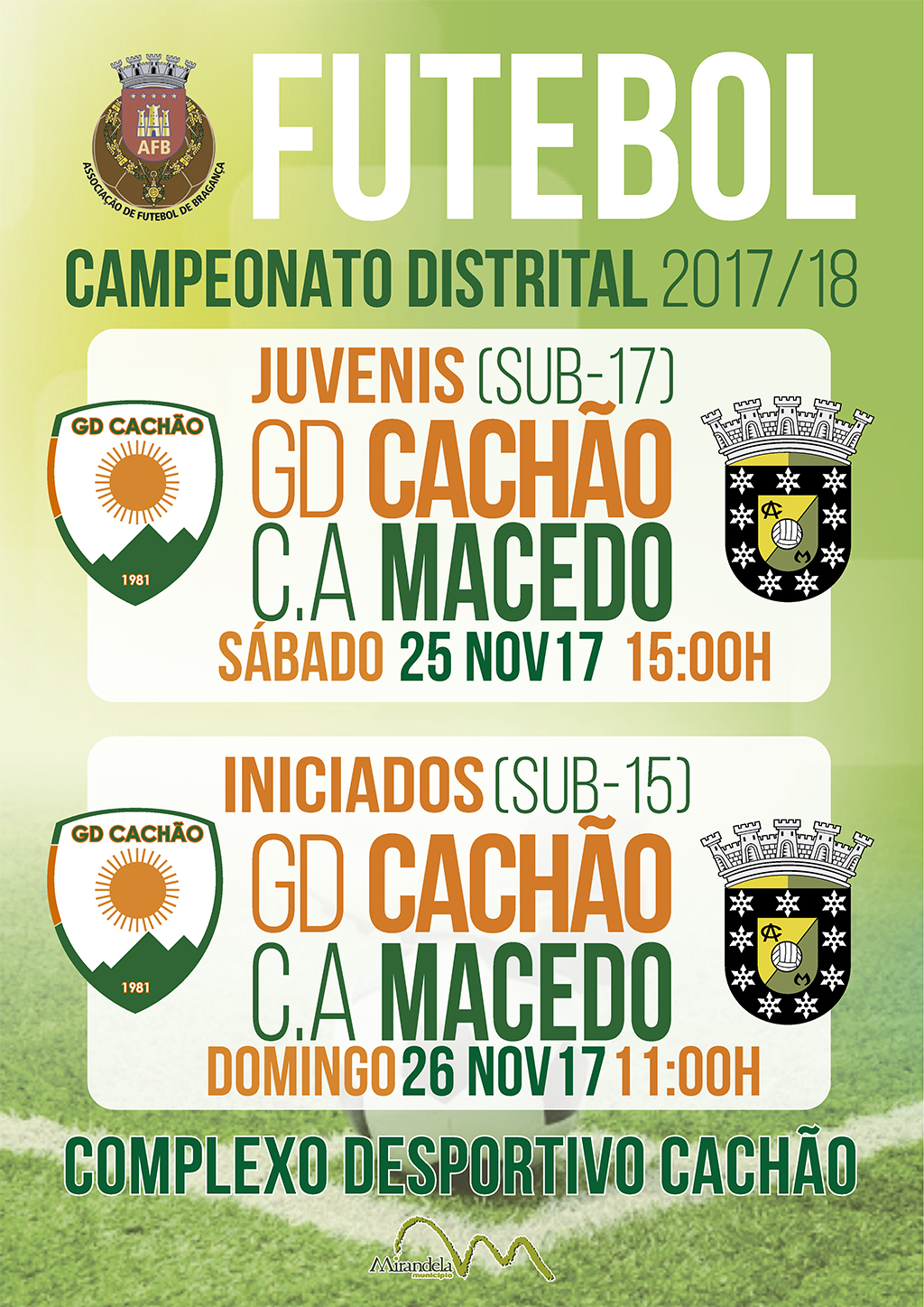Futebol: Campeonato Distrital de Juvenis e Iniciados (G. D. Cachão)
