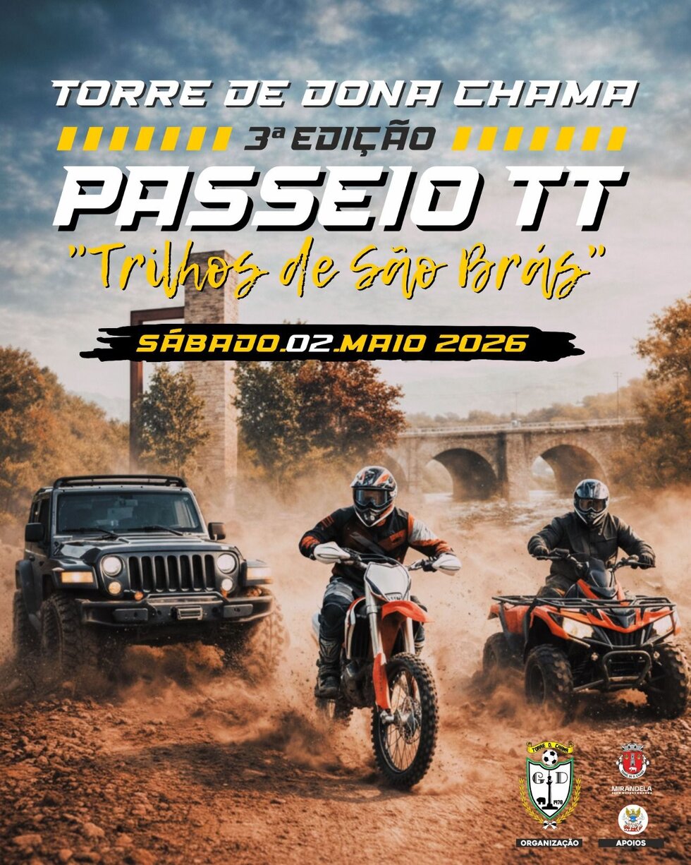 Realiza-se no dia 2 de maio de 2026, na freguesia de Torre de Dona Chama, a 3.ª edição do Passeio TT “Trilhos de São Brás”.