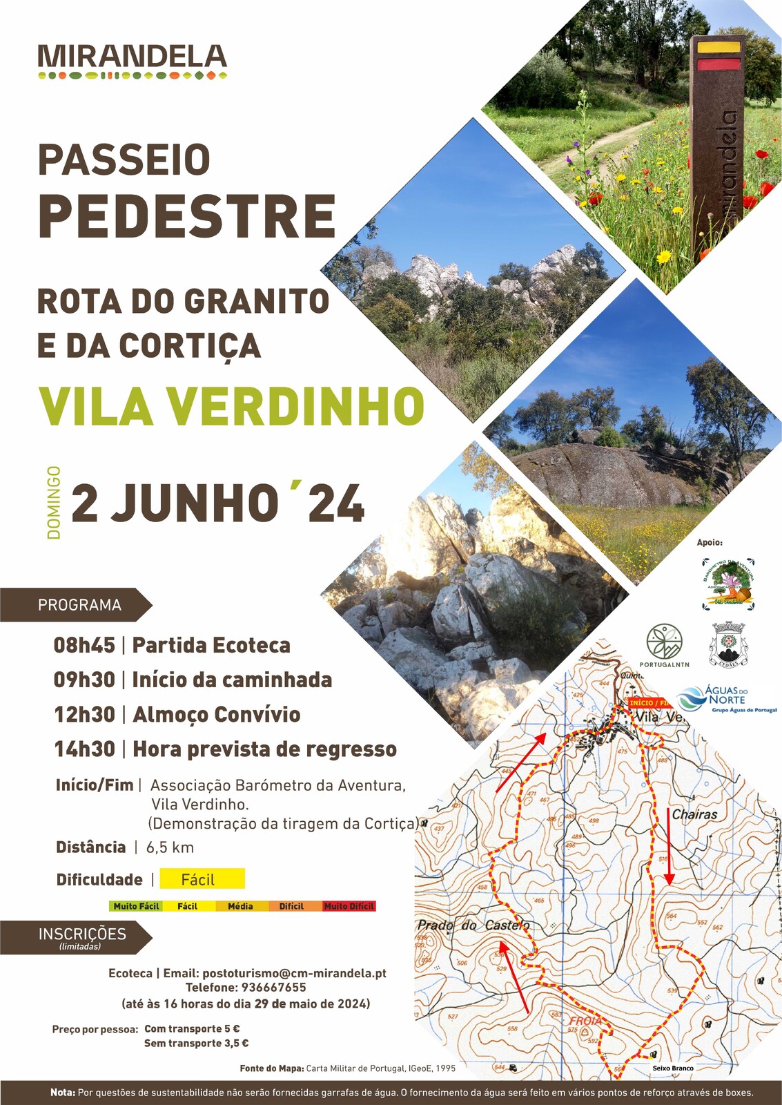 Inscrições: Ecoteca, pelo e-mail: postoturismo@cm-mirandela.pt ou pelo telefone 936 667 655 até às 16 horas do dia 29 de maio de 2024