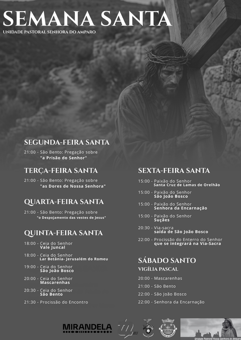 Ao longo destes dias, diferentes celebrações e momentos simbólicos assinalam a Paixão, Morte e Ressurreição de Cristo.