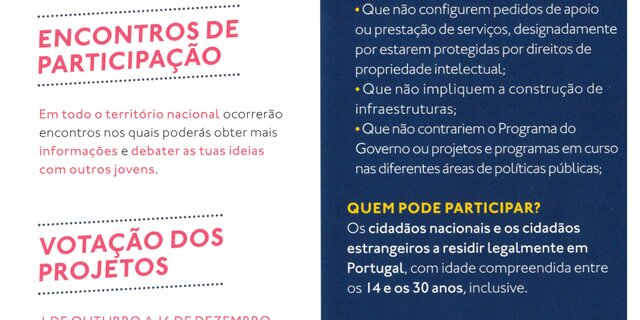 Informação para o mapa Elementos Orçamento Participativo Jovem