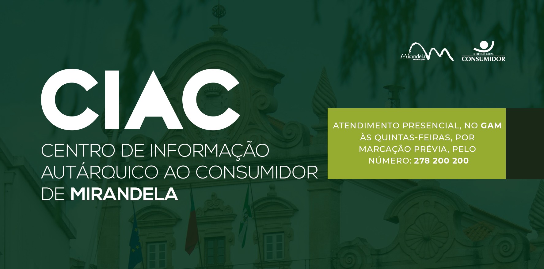 O Centro de Informação Autárquico ao Consumidor de Mirandela (CIAC), encontra-se em funcionamento nas instalações do Gabinete de Apoio do Munícipe - GAM, com atendimento presencial, às quintas-feiras, por marcação prévia através do número 278 200 200.