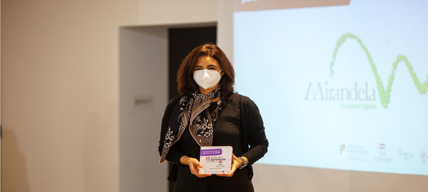 Júlia Rodrigues, presidente da Câmara Municipal de Mirandela recebeu a distinção na cerimónia de entrega do do Prémio "Viver em Igualdade 2020", realizada esta sexta feira, 23 de outubro, em São João da Madeira.
