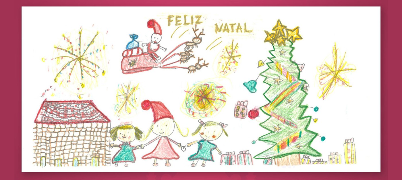 Conheça o desenho vencedor do concurso “Postal de Natal 2020” elaborado por Ana Teresa Rafael Pimenta Guerra da Turma E do 2.º Ano da Escola Básica do Fomento de Mirandela. A pequena artista receberá um vale de 75€ para aquisição de material escolar. A Escola Básica do Fomento será também contemplada com um vale no valor de 50€.