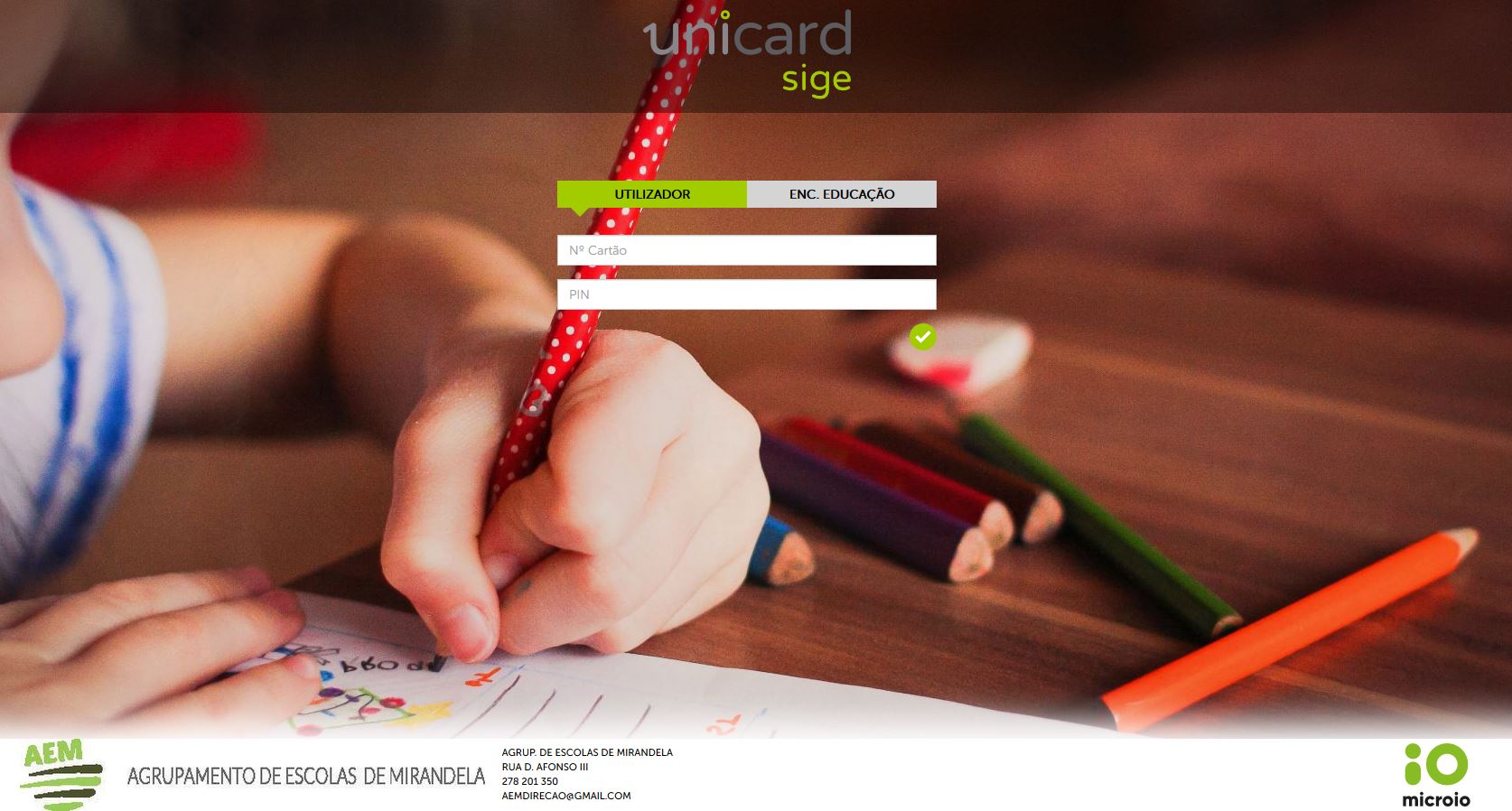 Para aceder à plataforma deverá clicar na imagem com o logótipo Portal Sige3 que se encontra no site do seu estabelecimento (https://aemirandela.pt ou diretamente em https://aemirandela.unicard.pt:8080)