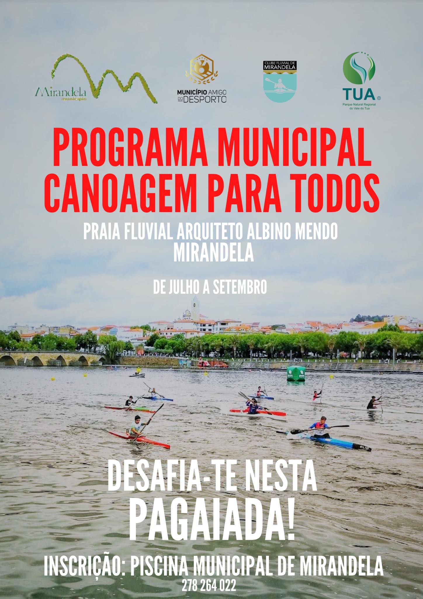 A Câmara Municipal de Mirandela criou o Programa Municipal Canoagem para Todos. De julho a setembro e de forma totalmente gratuita, esta ação propõe-se a alargar a oferta de acesso à prática desportiva de canoagem para lazer, iniciação ou aperfeiçoamento, assim como melhorar o desempenho desportivo, rentabilizando os recursos naturais, humanos e materiais locais, contribuindo para o desenvolvimento cívico e físico da população do Concelho de Mirandela.