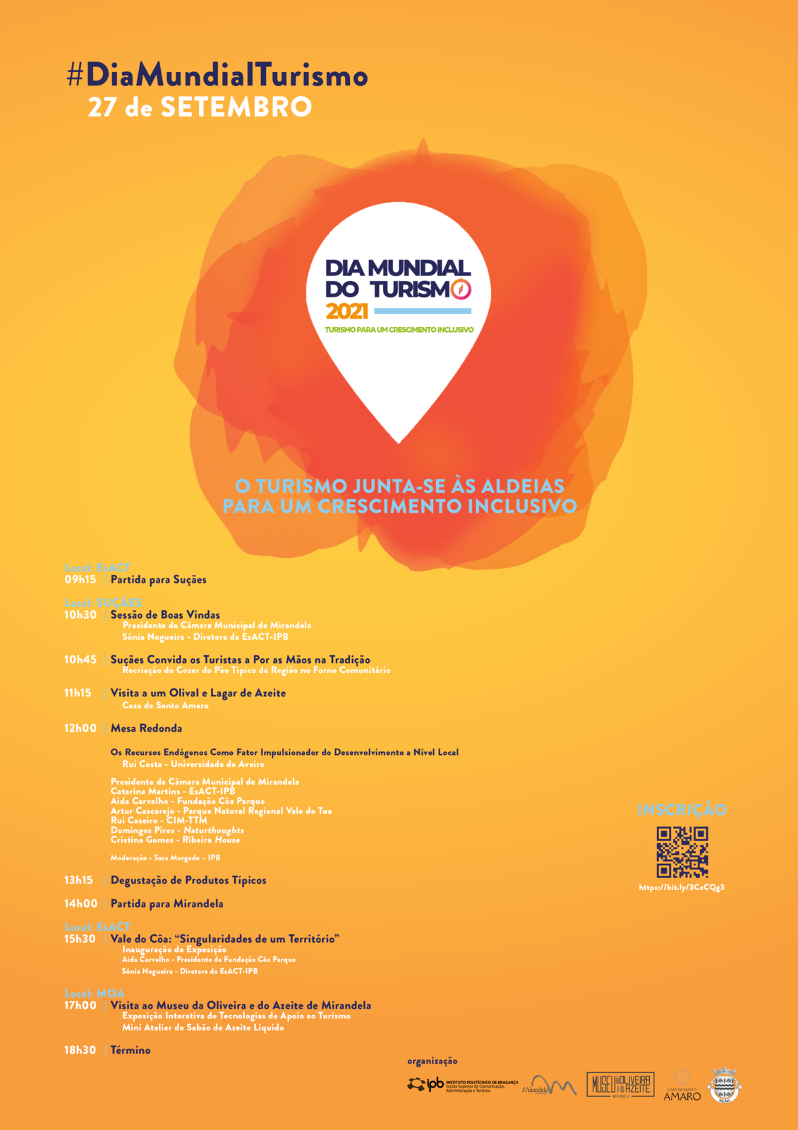 Neste sentido, e indo de encontro ao desafio lançado pela Organização Mundial de Turismo (OMT), o Município de Mirandela, em associação com a EsACT-IPB, propõe assinalar o Dia Mundial do Turismo com um conjunto de ações que visam aumentar a capacidade de resposta das comunidades locais, o uso eficaz de recursos, a integração dos avanços digitais e fomentar a inclusão social.