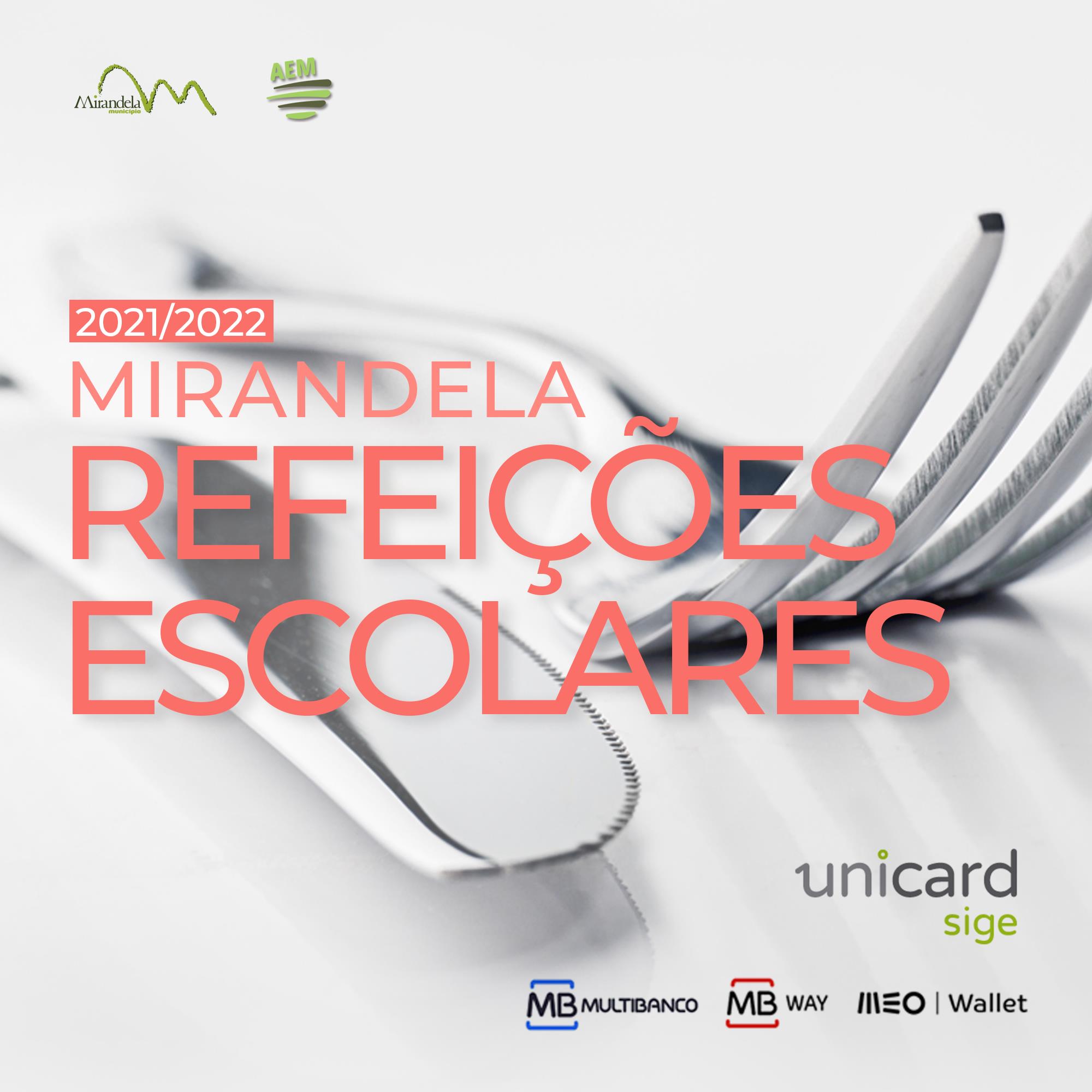 Sistema de carregamento de cartões de refeição, para o ano letivo 2021/2022, já se encontra disponível para todos os níveis de ensino do Agrupamento de Escolas de Mirandela.