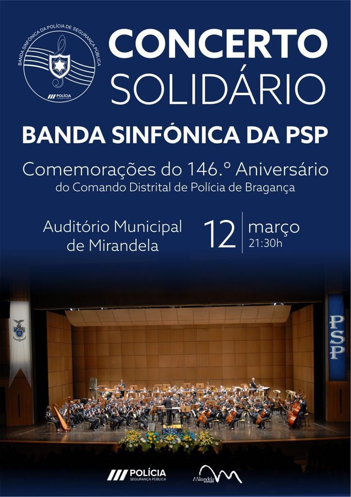 No âmbito das comemorações do 146.º aniversário do Comando Distrital de Polícia de Bragança, a Banda Sinfónica da PSP sobe ao palco do CCM a 12 de março, pelas 21:30h. O concerto solidário permitirá a troca de um bilhete por um bem alimentar com destino à Ucrânia.