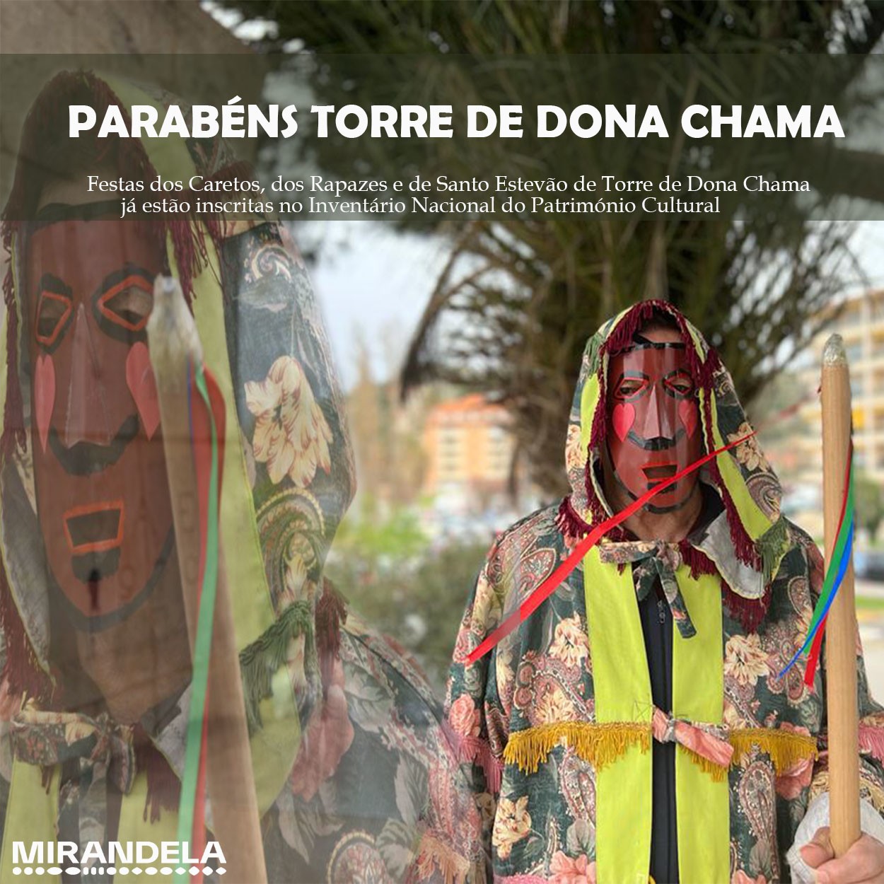 O processo de inscrição no Inventário Nacional do Património Cultural deve-se ao investimento conjunto da Fundação EDP e da Câmara Municipal de Mirandela, assim como ao empenho da Associação Dona Flâmula e da população de Torre de Dona Chama que anualmente garantem a realização das Festas dos Caretos, dos Rapazes e Santo Estevão por altura do Natal.