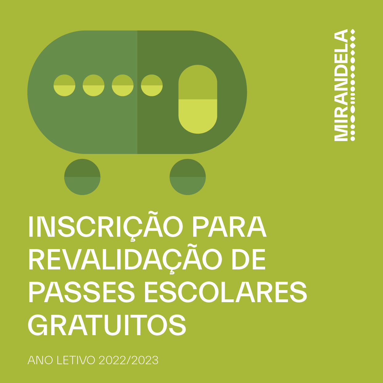 Estão a decorrer as inscrições para revalidação de passes para utilização de transporte escolar, gratuito. A ficha de inscrição poderá ser preenchida junto dos Serviços Municipais de Educação ou do Agrupamento de Escolas de Mirandela.