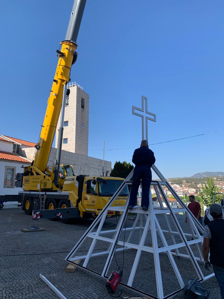 Trabalhos de colocação de vidros na cúpula e nas guardas da torre da Igreja de Nossa Senhora da Encarnação, em Mirandela