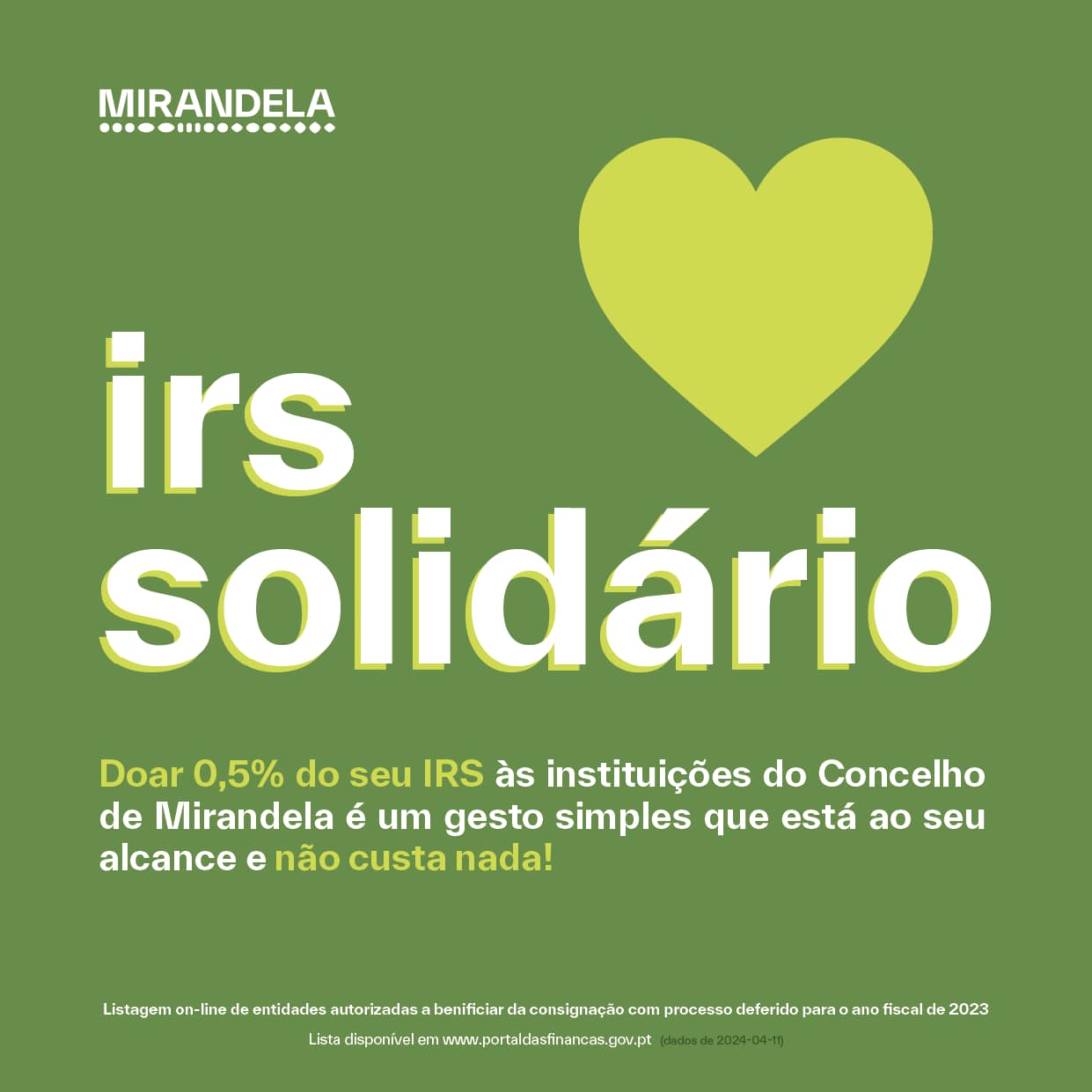 Trata-se um gesto simples que não acarreta quaisquer custos, pois incide apenas sobre o valor do IRS que efetivamente paga ao Estado, não implicando qualquer diminuição no seu reembolso.
