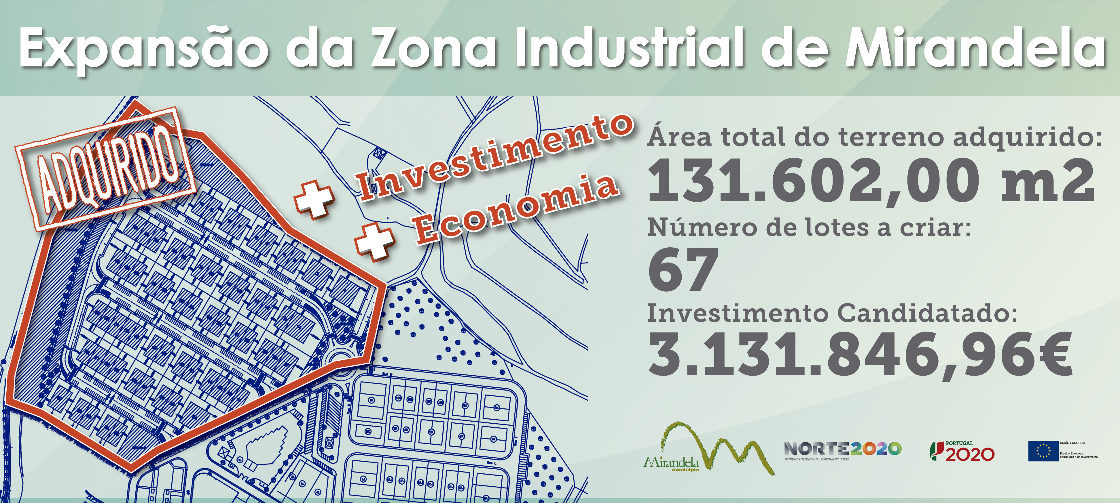 Com a aprovação da totalidade do valor candidatado, que corresponde a um investimento de 3.131.846,92€ e um apoio FEDER de 2.662.060,88€, será este o financiamento que irá permitir a expansão da Zona Industrial.