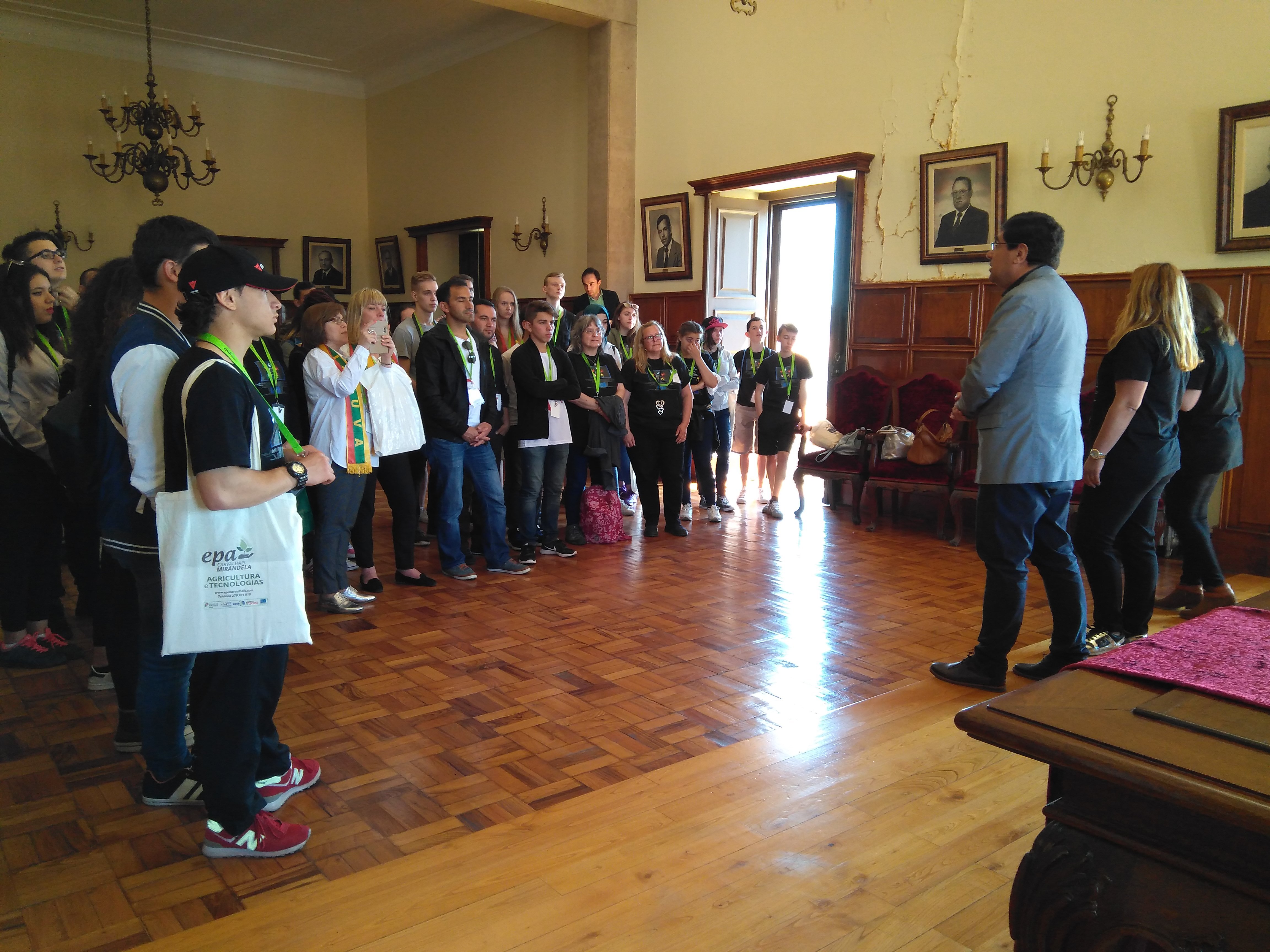 A comitiva foi recebida pelo Presidente da Câmara Municipal que, em ambiente informal e animado, deu as boas vindas a todos no Salão Nobre do Palácio dos Távoras.