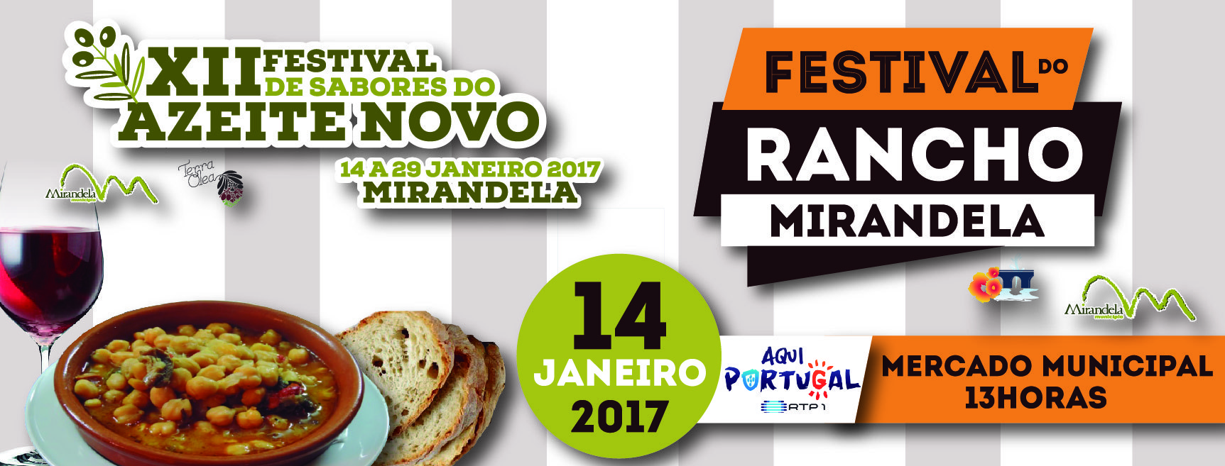 É com este objetivo de valorizar e promover não só os produtos, mas também o território, que se vai realizar a 12ª edição Festival de Sabores do Azeite Novo de 14 a 29 de janeiro e a primeira edição do Festival do Rancho de Mirandela no dia 14 de janeiro, no Mercado Municipal, com a transmissão em direto do programa da RTP Aqui Portugal.
