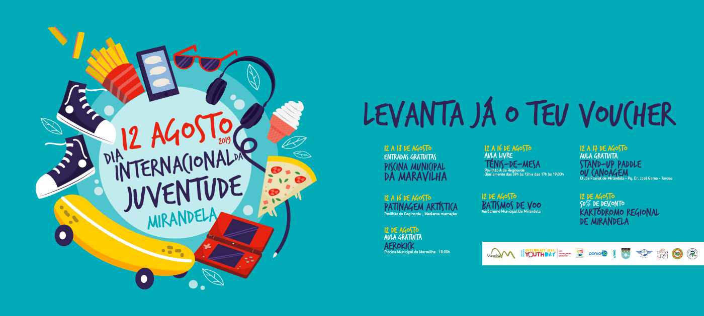Para assinalar o Dia Internacional da Juventude, no próximo dia 12 de agosto, a Câmara Municipal de Mirandela oferece vouchers aos jovens com idades entre os 12 e os 29 anos para que estes possam usufruir gratuitamente ou com grandes descontos em diversas atividades.