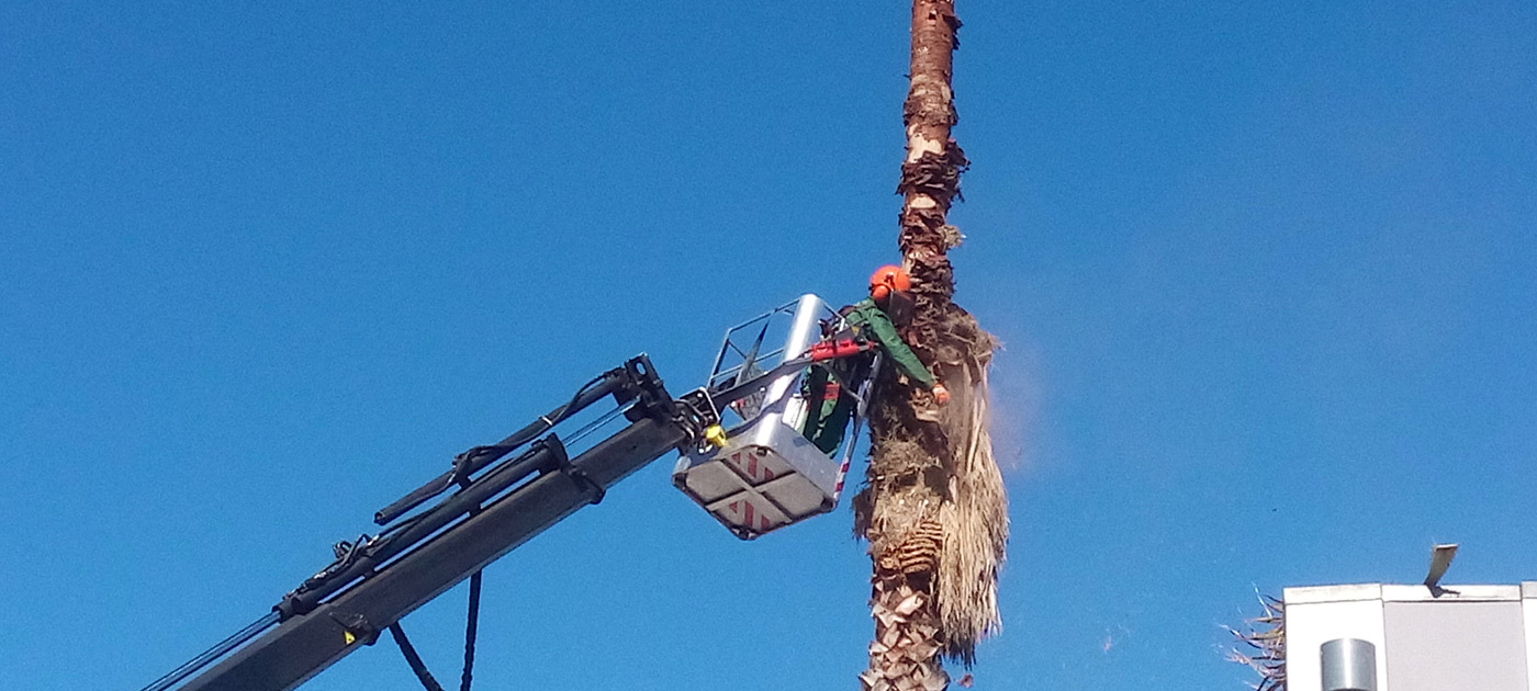 Além disso e no mesmo âmbito, procedeu também à limpeza das palmeiras, com fim a restituir a elegância do seu porte, tirando maior partido paisagístico das suas copa.