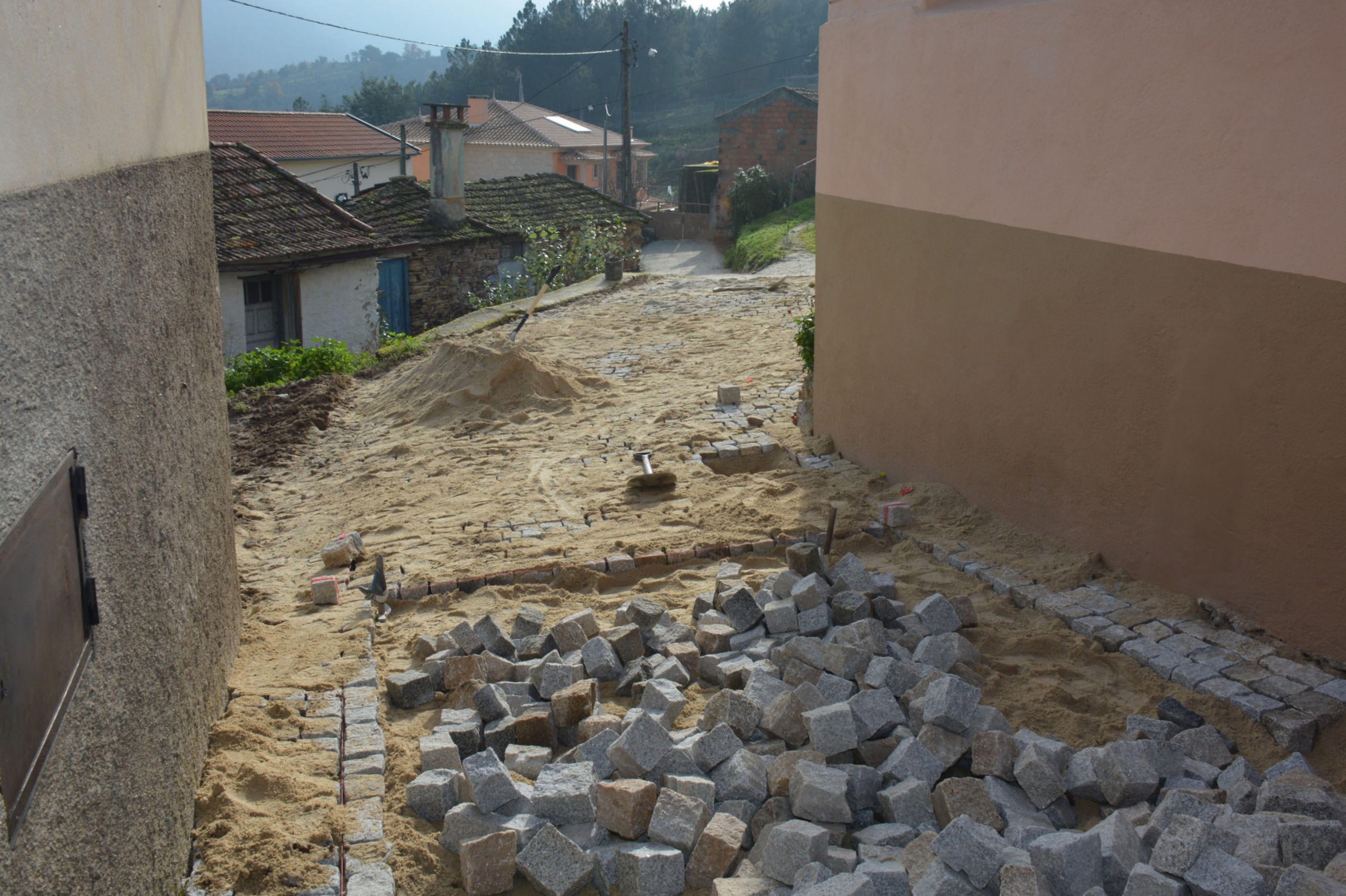 A aldeia de Vale de Madeiro, localidade anexa da freguesia de Mirandela, tem em fase de conclusão o calcetamento de duas das suas ruas.