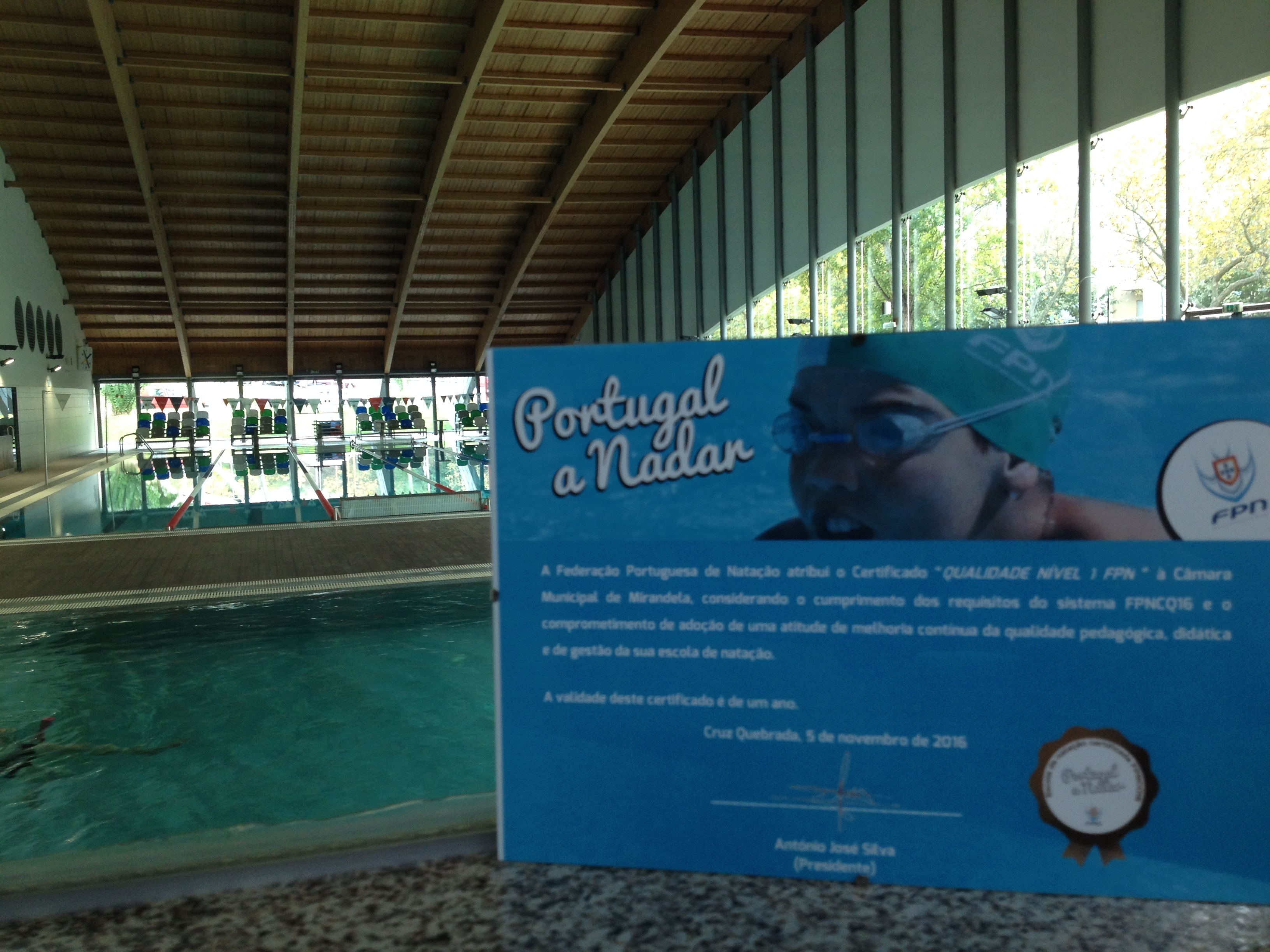 Decorreu no passado dia 5 de novembro de 2016, na cidade do Porto, a Gala da Federação Portuguesa de Natação (FPN), onde foram atribuídos os certificados às Escolas de Natação que integram o processo de Certificação da FPN, ao abrigo do Protocolo Portugal a Nadar. Nesta Gala foram atribuídos certificados aos que iniciaram o processo recentemente e que se encontram a consolidar o processo iniciado na época anterior, que é o caso da Escola de Natação do Município de Mirandela.