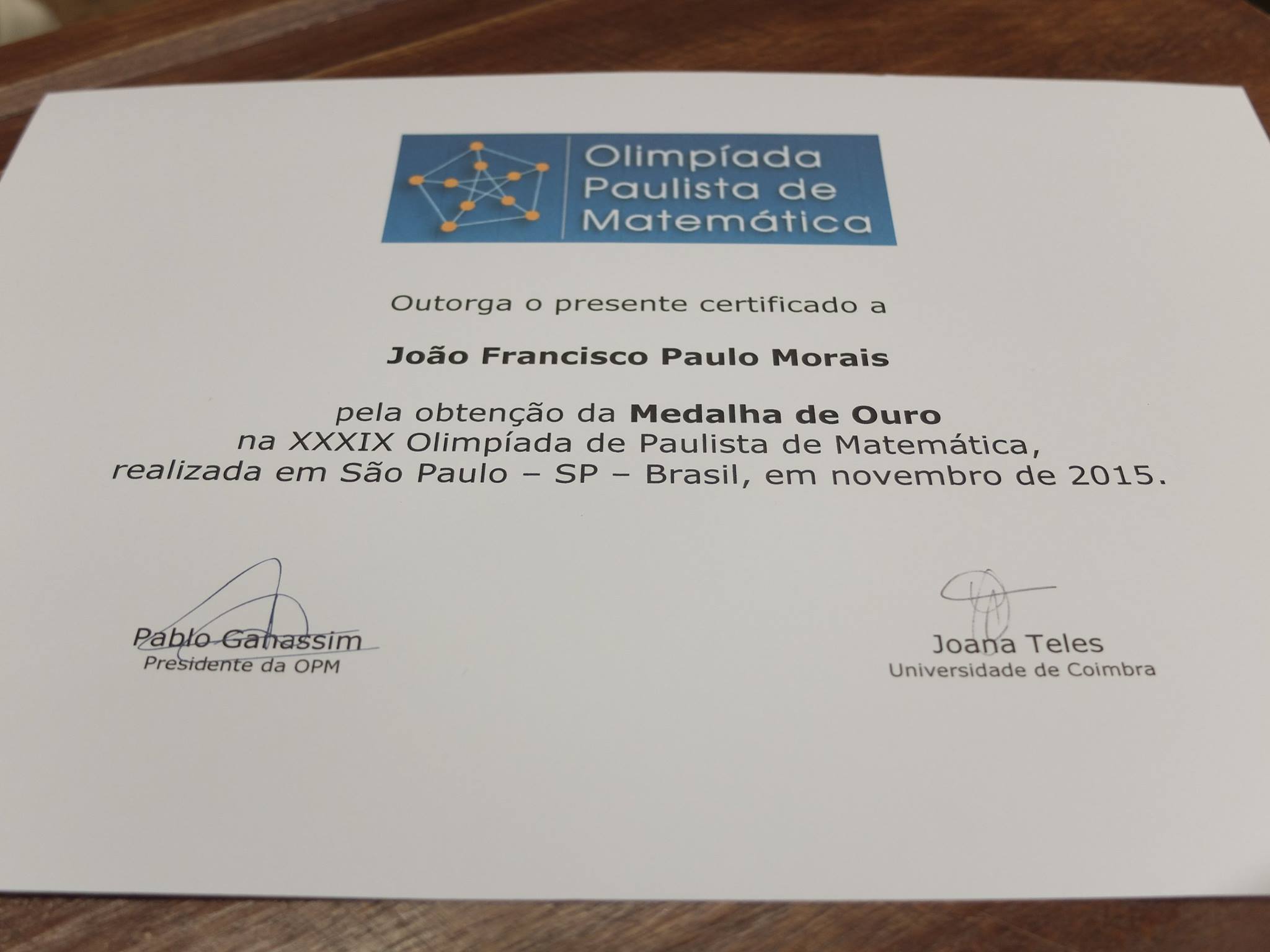 O jovem aluno mirandelense João Francisco Paulo Morais está mais uma vez de parabéns ao vencer uma Medalha de Ouro na Olimpíada Paulista de Matemática, organizada conjuntamente pela Sociedade Portuguesa da Matemática e a sua congénere brasileira.