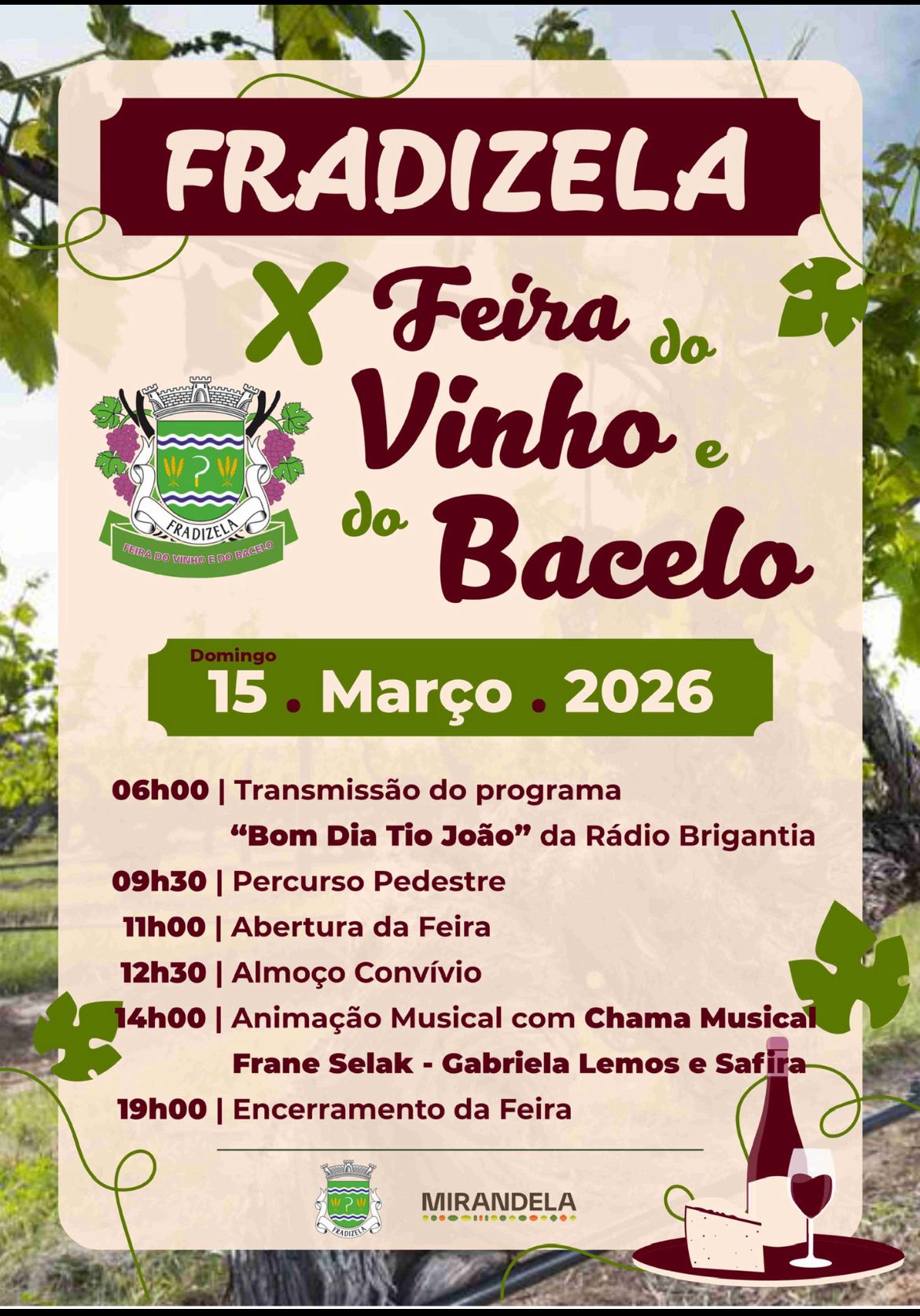 No dia 15 de março de 2026, Fradizela volta a celebrar a sua identidade e tradição com a realização da X Feira do Vinho e do Bacelo.