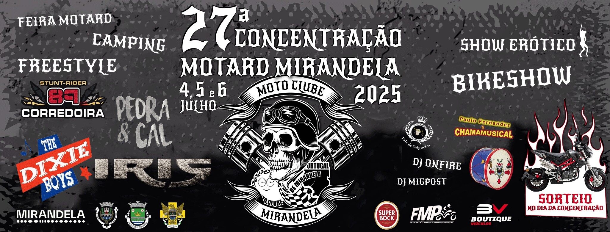 Mirandela recebe a 27ª Concentração Motard. As mais belas máquinas e os amantes dos veículos de duas rodas juntam-se de 4 a 6 de julho no Parque Dr. José Gama. Durante três dias não faltará animação no recinto do evento, por onde passarão milhares de pessoas.