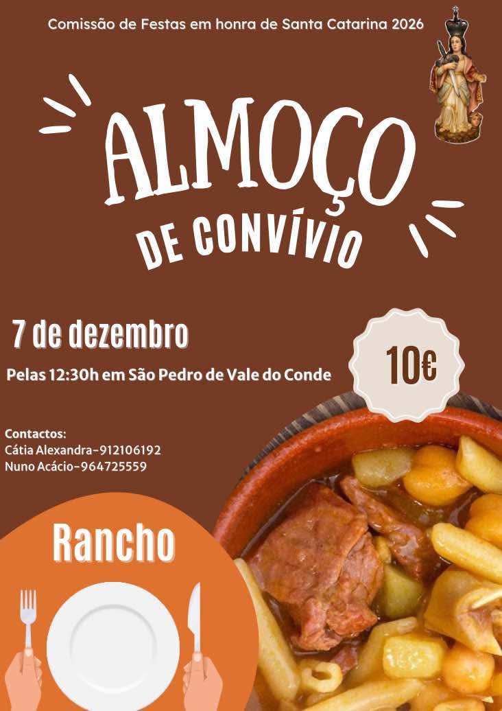 A Comissão de Festas em Honra de Santa Catarina 2026 promove, no dia 7 de dezembro, um Almoço de Convívio aberto à comunidade.