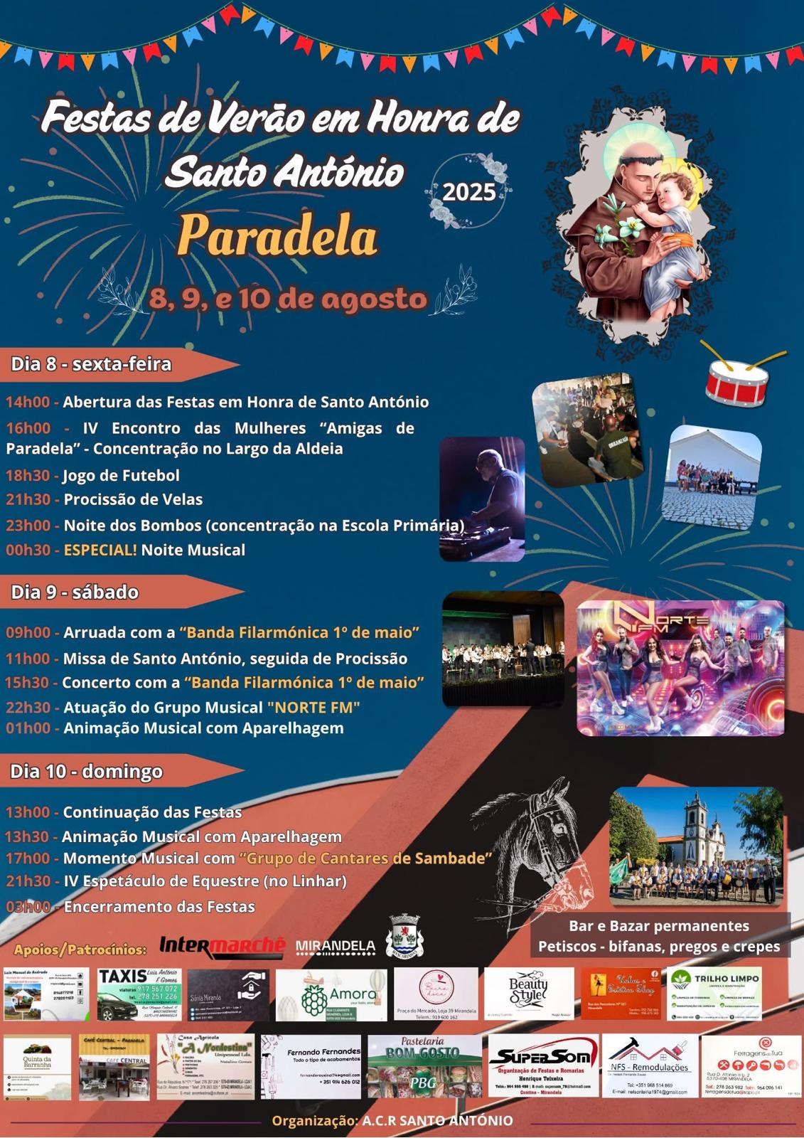 Festa de Verão em Honra de Santo António, de 8 a 10 de agosto, em Paradela.