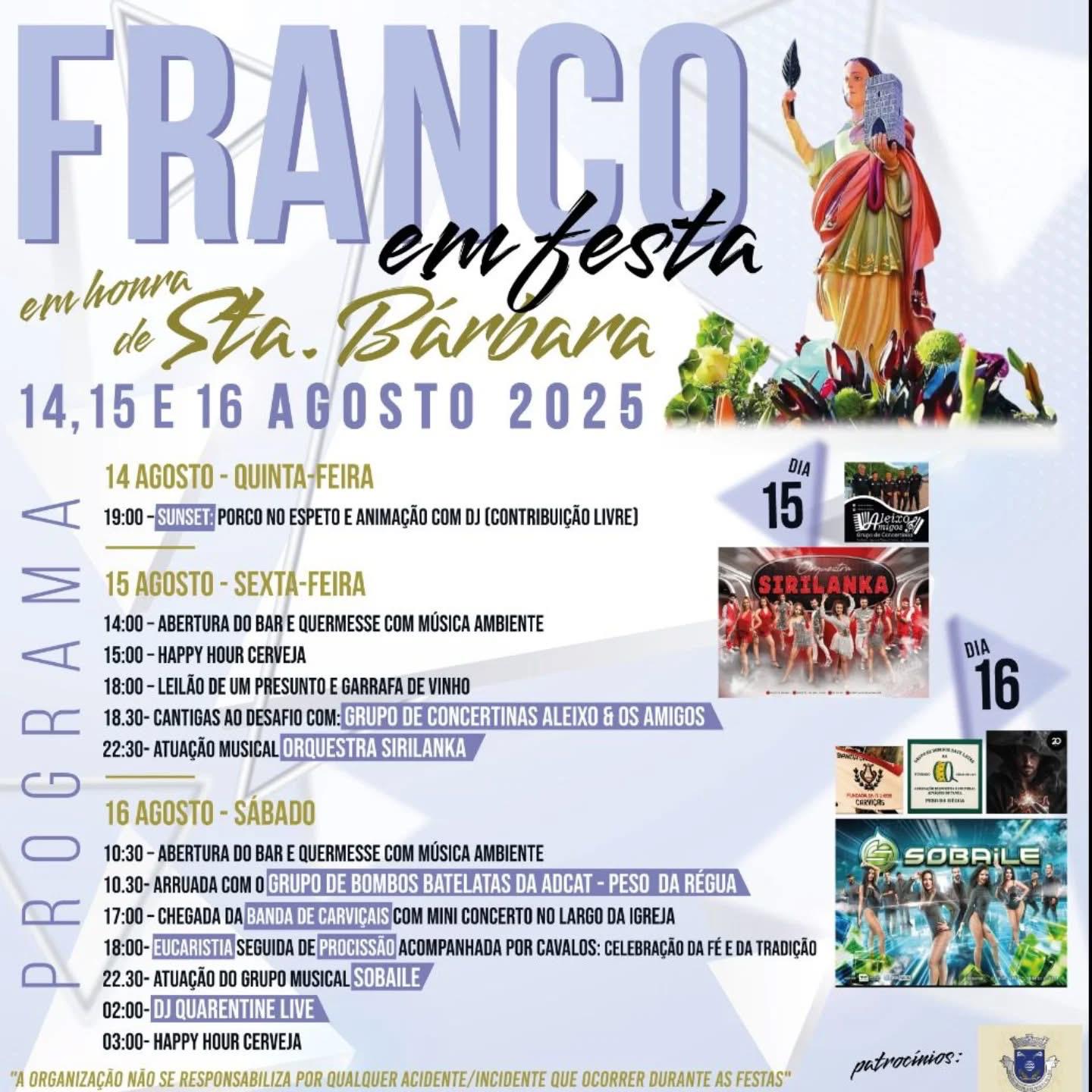Festa em Honra de Santa Bárbara, de 14 a 16 de agosto, no Franco.