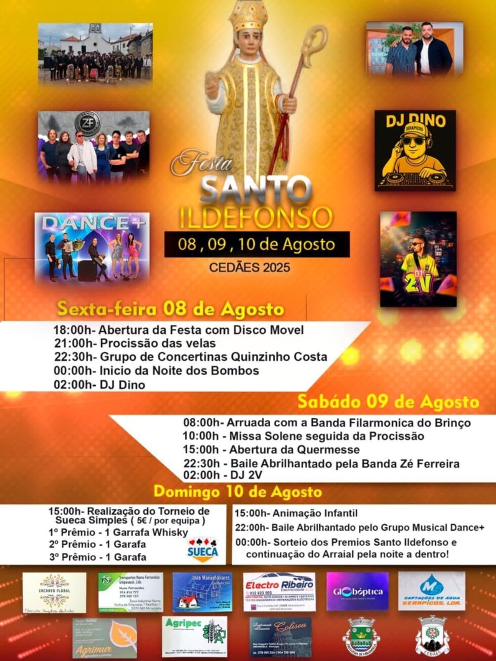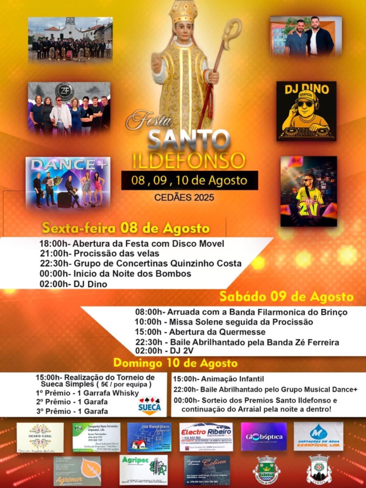 Festa em Honra de Santo Ildefonso, de 8 a 10 de agosto, em Cedães.