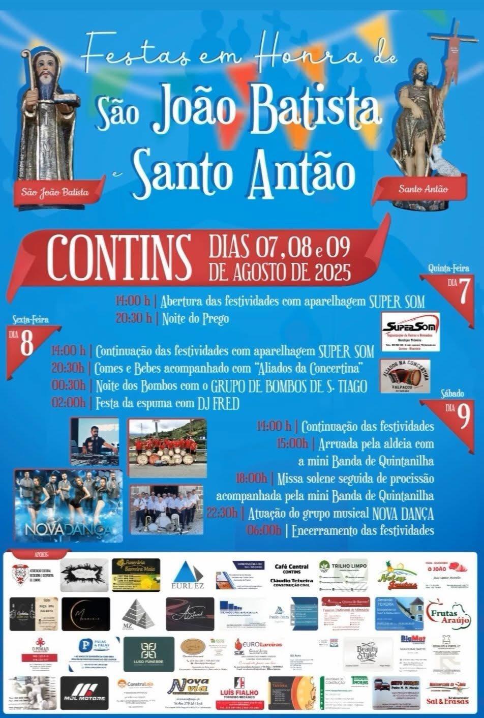 Festas em Honra de São João Batista e Santo Antão, de 7 a 9 de agosto, em Contins.