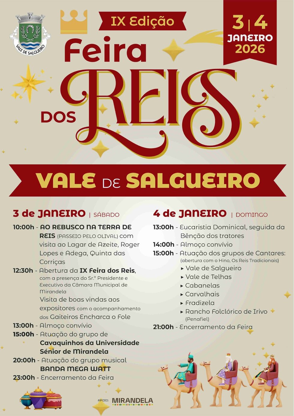 Nos dias 3 e 4 de janeiro de 2026, Vale de Salgueiro celebra a IX Feira dos Reis.