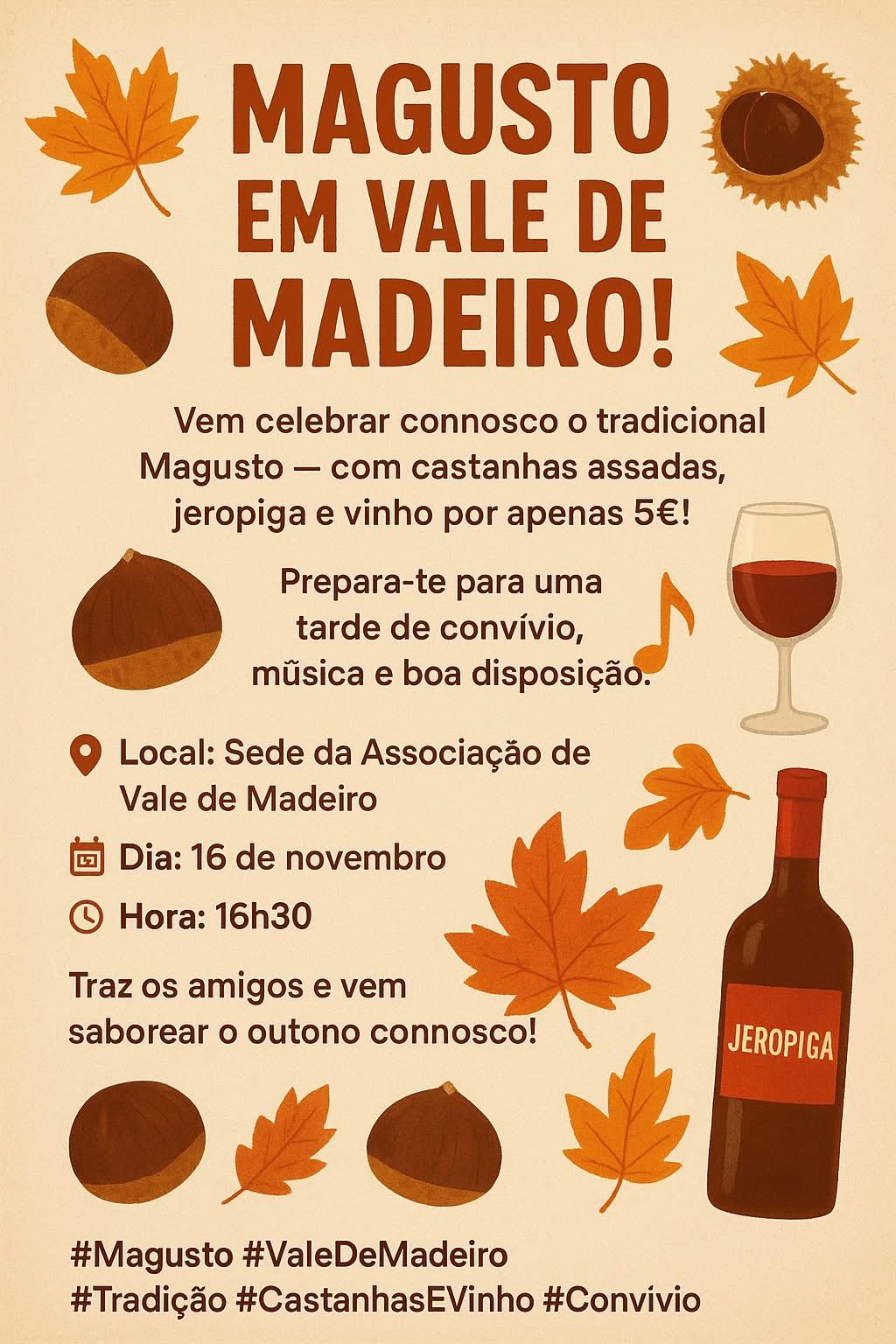 No dia 16 de novembro, a Sede da Associação de Vale de Madeiro, recebe, pelas 16h30, um Magusto.